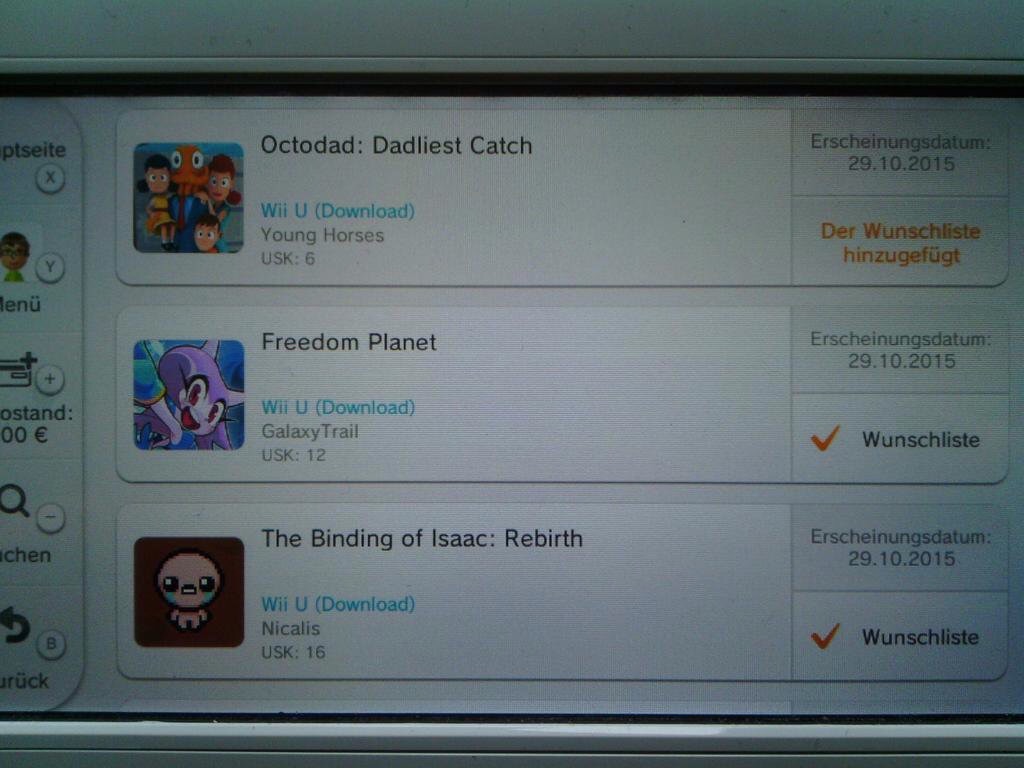 We already knew that Octodad is rumored to be releasing on the European eShop next week. But, it now seems like it’s not the only game releasing that day, as there are now listings for Freedom Planet and The Binding of Isaac: Rebirth as well.